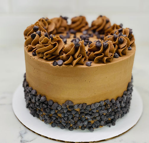 Chocolate cake with chocolate frosting and mini chocolate chips. Perfect for a chocoholic!!